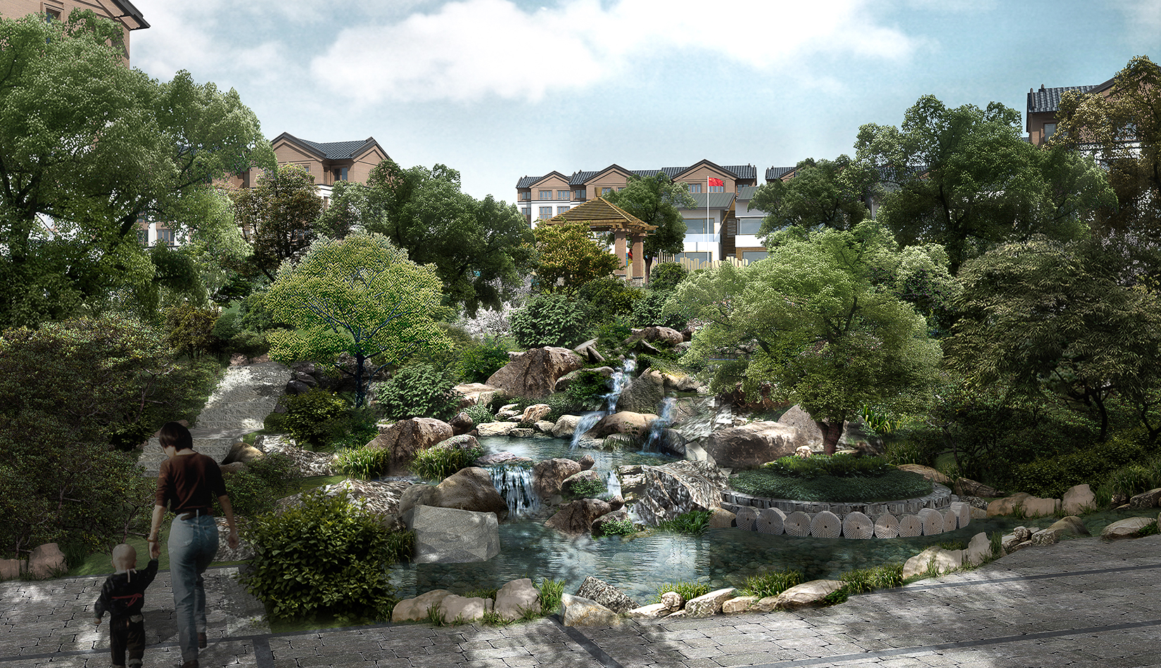 以“鄉(xiāng)村振興” 為背景,以“藏馬山居生活”為目標核心,項目把東方田園與住區(qū)生活融為一體、貫穿自然生態(tài)、海綿城市的設計理念。景觀設計挖掘藏馬山的特色文化,延續(xù)當?shù)鼐G色生態(tài)、山野趣味的自然風貌,通過場景化的展示,融入到景觀設計中,打造特點鮮明、各有特色的入口體驗、商業(yè)街區(qū)、山居生活三大板塊。