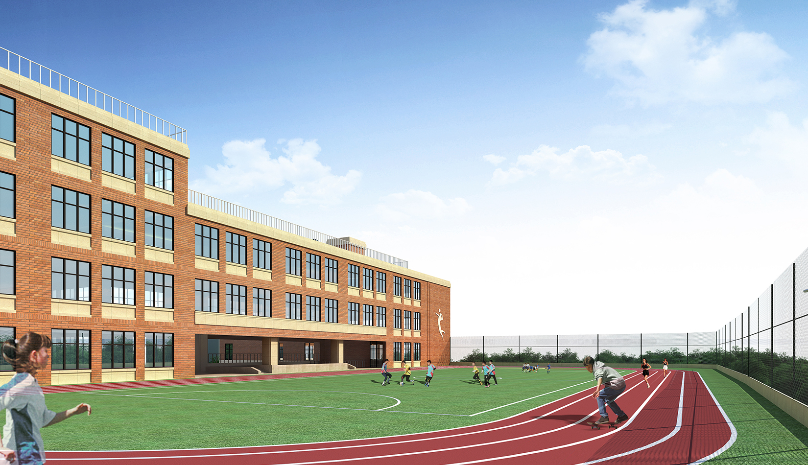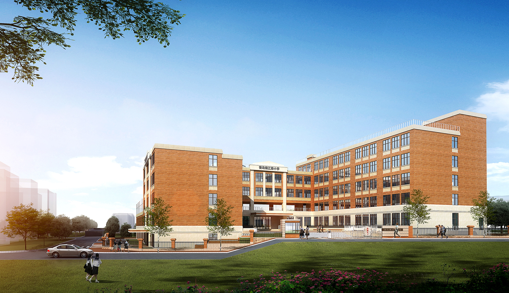 該項目的設(shè)計延續(xù)區(qū)域肌理,與區(qū)域城市肌理相融合,提高區(qū)域環(huán)境。立面設(shè)計考慮市南區(qū)及鎮(zhèn)江路原有學(xué)校風(fēng)格,采用學(xué)院派建筑風(fēng)格,塑造古典人文氛圍,校園墻體通過磚的變化設(shè)計文化墻,將文化傳承與精神傳承融合在建筑之中。根據(jù)地勢和日照進(jìn)行功能布局排列,下沉庭院、連廊和架空設(shè)計的鄰近操場的校園環(huán)境設(shè)計,一方面塑造了豐富多彩的校園環(huán)境,另一方面充分保證了室內(nèi)環(huán)境的采光,讓孩子們更多地享受陽光。
