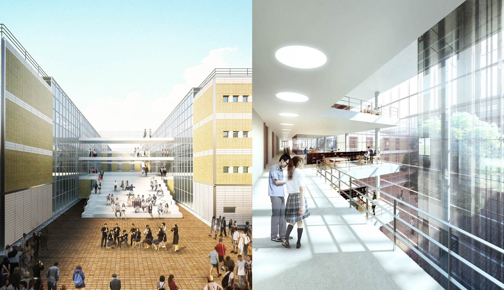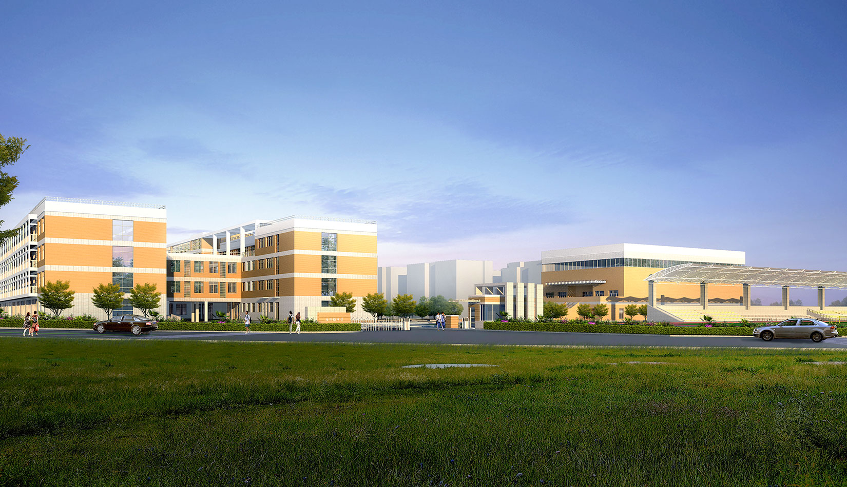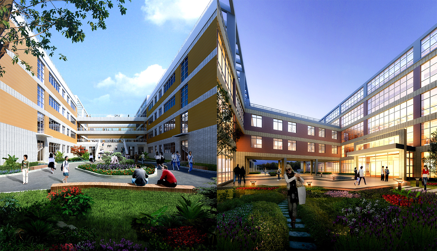 通過對功能、流線的科學整合與單體建筑的精心設計,運用現(xiàn)代的建筑語言營造富有強烈時代感的校園環(huán)境,并不斷探索開放、和諧、人文的校園設計策略,使建筑體現(xiàn)時代特征。