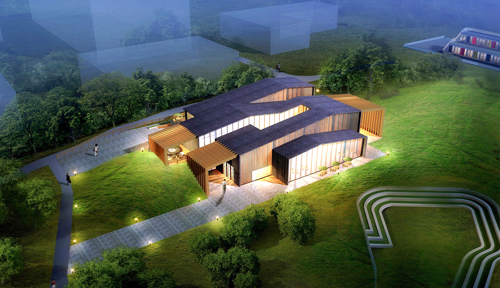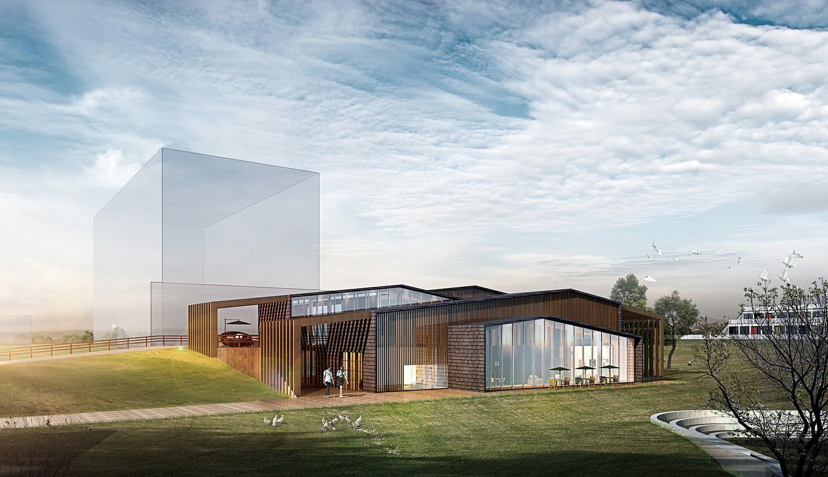 項(xiàng)目選址位于“中德創(chuàng)意設(shè)計 D-ZONE”地塊中,天然的谷地和水流,以草地為主。 考慮到周邊建筑及環(huán)境,確定了交錯的疊合的取景形式,致力于增加觀景表面積將美景框入窗中。 辦公區(qū)、多功能廳、展覽區(qū)、室外展廳和自然環(huán)境相互交融并置,相互之間流線獨(dú)立又彼此滲透。